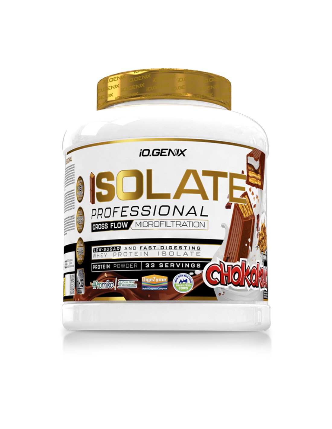 iO.GENIXProteína Isolada, con aislado de proteína formulado con una de las patentes más reconocidas, como es PROMIKO ® que utiliza la microfiltración de flujo cruzado (CFM) para preservar la calidad de la proteína e incluir un excelente perfil de aminoácidos además de contar con una gran variedad de sabores y una increíble textura.