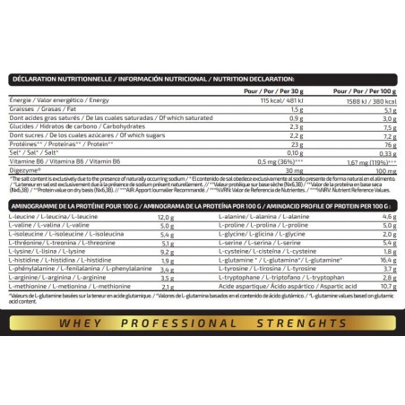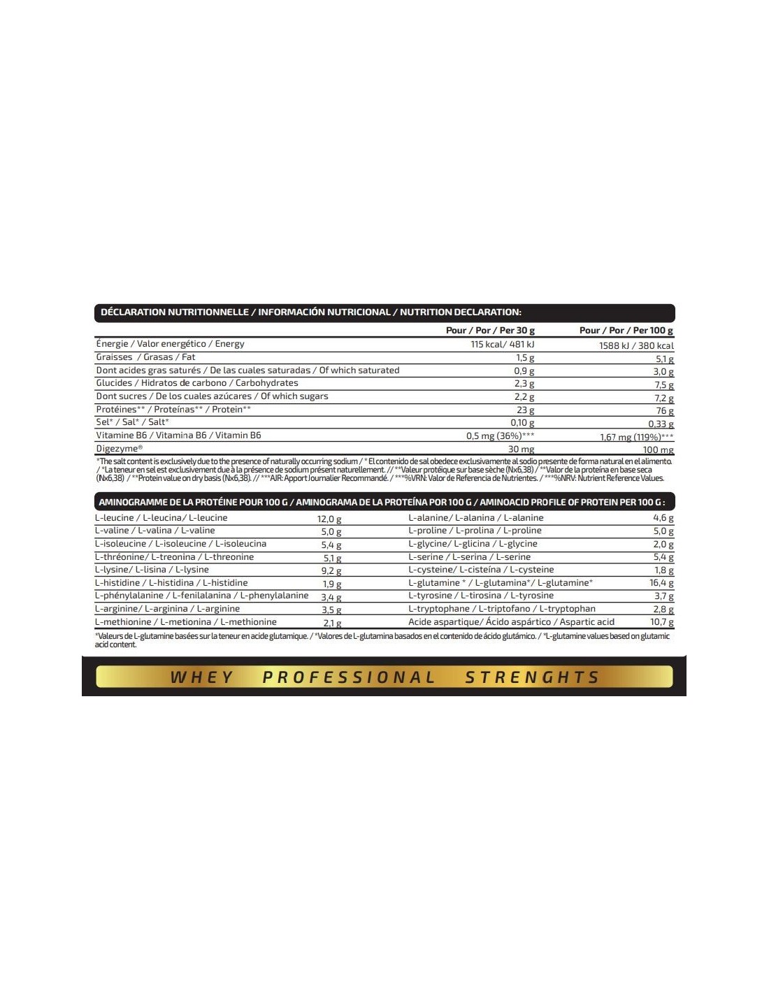WHEY 80 PROFESSIONAL, uno de los mejores concentrados de proteína de suero del mercado, al combinar materias primas de la máxima calidad con increíbles aromas elegidos por nuestro equipo de expertos. Además de llevar el complejo multienzimático Digezyme® y vitamina B6 para convertirla en una de las proteínas WHEY más completas de la actualidad.