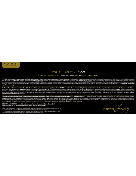 Esta proteína está elaborada con las mejores patentes e ingredientes naturales de la actualidad. En iO.GENIX hemos querido garantizar la mejor procedencia de todo lo que conlleva esta ISOLUXE.