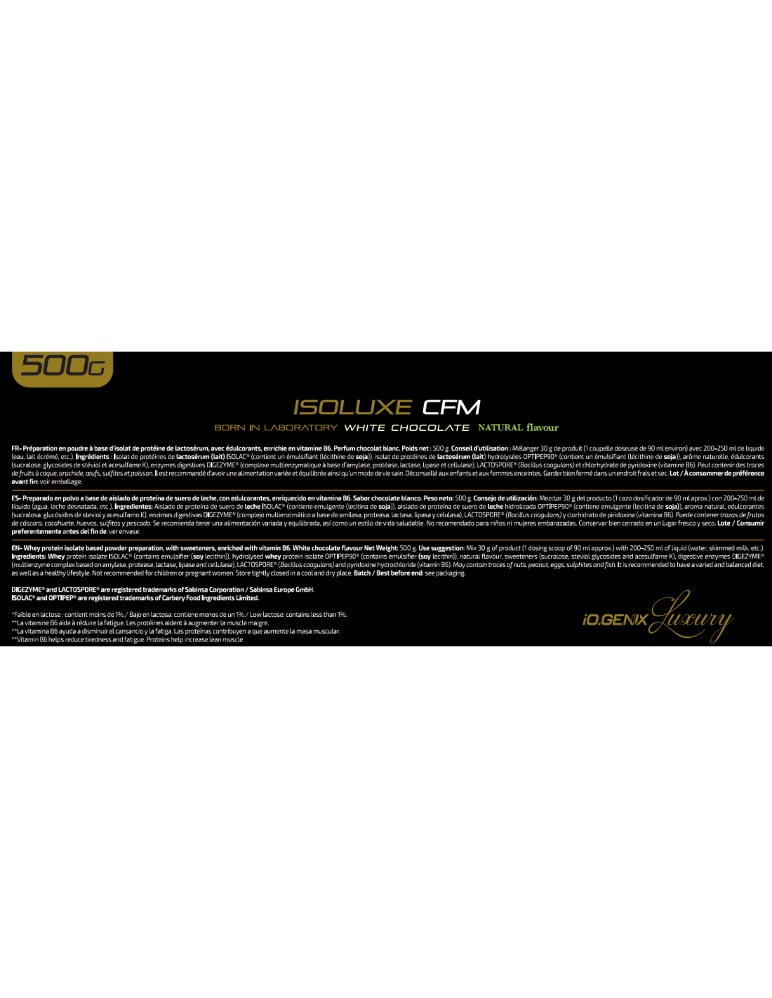 Desde iO.GENIX, os presentamos a ISOLUXE, una proteína innovadora y con ingredientes de calidad superior seleccionados cuidadosamente por nuestro equipo de laboratorio e I+D+I contando siempre con la ayuda de nuestros atletas más experimentados para conseguir la proteína que todos estábamos esperando.