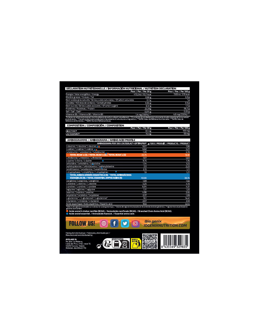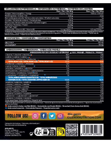 Esta proteína está elaborada con las mejores patentes e ingredientes naturales de la actualidad. En iO.GENIX hemos querido garantizar la mejor procedencia de todo lo que conlleva esta ISOLUXE.