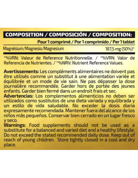 - 187,5 mg (50% VRN) de magnesio por dosis diaria recomendada